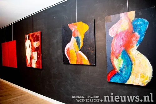 Lou vertelde dat het speciaal is dat het twee schoonzussen zijn, die nu voor de eerste keer samen exposeren en dat het ook speciaal is dat ze beide een heel eigen en verschillende stijl hebben. De een groot en abstract en de tweede klein en figuratief.