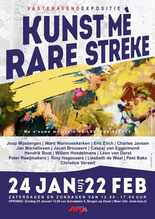 Van 24 januari tot en met 22 februari is bij Galerie Arsis in Bergen op Zoom de expositie "Kunst Mè Rare Streke' te zien.
