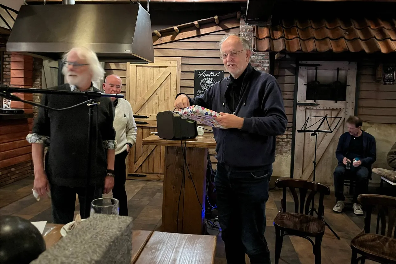 Bij dit afscheid was Irene Weug de stalmeester of ceremoniemeester, had Jan Kettelerij een mooie speech voor Maarten en droeg Dick Vrolijk een gedicht voor over Maarten zijn werkzaamheden.