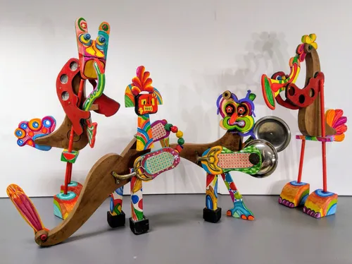 Willem is van een andere soort. Zijn atelier staat en ligt vol gevonden en gekregen onderdelen. Niemand die het nog wil hebben. Dan komt Willem met zijn fantasie en geeft het afval een tweede leven. Hij vormt de onderdelen om tot kleurrijke assemblages. Met meer of minder fantasie zie je er feestende krabben of andere beesten in, soms ook voertuigen, vliegtuigen of ander tuig.